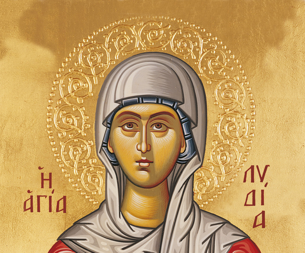 Η Αγία Λυδία ήταν έμπορος πορφύρας από τα Θυάτειρα της Μικράς Ασίας. Διέμενε στους Φιλίππους της Μακεδονίας, όπου κατηχήθηκε και βαπτίστηκε στις όχθες του ποταμού Ζυγάκτη μαζί με όλη την οικογένειά της από τον Απόστολο Παύλο (Πράξεις των Αποστόλων, κεφ. 16). Αποτέλεσε την πρώτη Ευρωπαία Χριστιανή, καθώς ήταν η πρώτη που βαπτίσθηκε επί ευρωπαϊκού εδάφους.