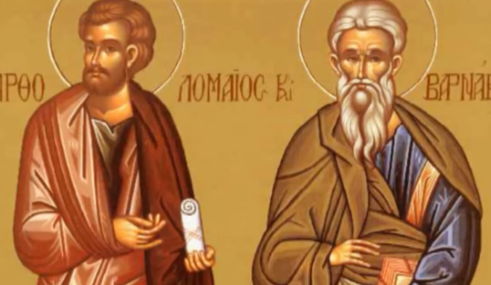 Σήμερα, Τετάρτη 11 Ιουνίου 2025, σύμφωνα με το εορτολόγιο τιμάται η μνήμη των Βαρθολομαίου και Βαρνάβα των Αποστόλων, Αγίου Λουκά Αρχιεπισκόπου Συμφερουπόλεως και Κριμαίας, Αγίου Ζαφειρίου του Νεομάρτυρα.