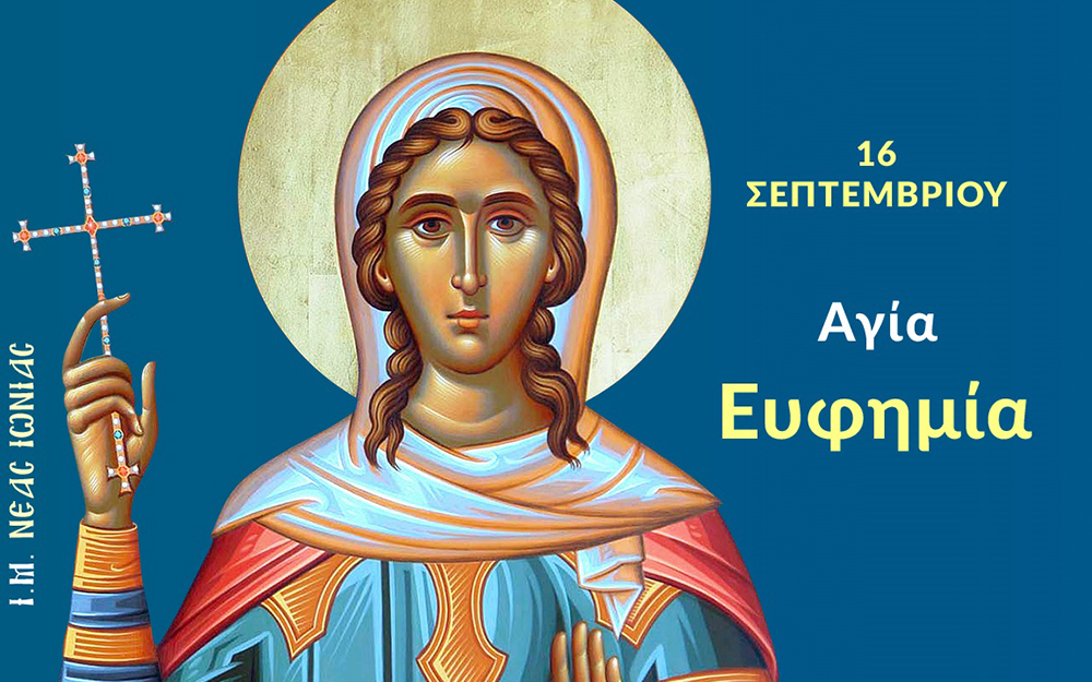 Σήμερα, Τρίτη 16 Σεπτεμβρίου 2025, σύμφωνα με το εορτολόγιο τιμάται η μνήμη της Αγίας Ευφημίας, της Αγίας Λουντμίλας, της Αγίας Μελιτινής μάρτυρος και του Οσίου Κυπριανού Μητροπολίτη Κιέβου