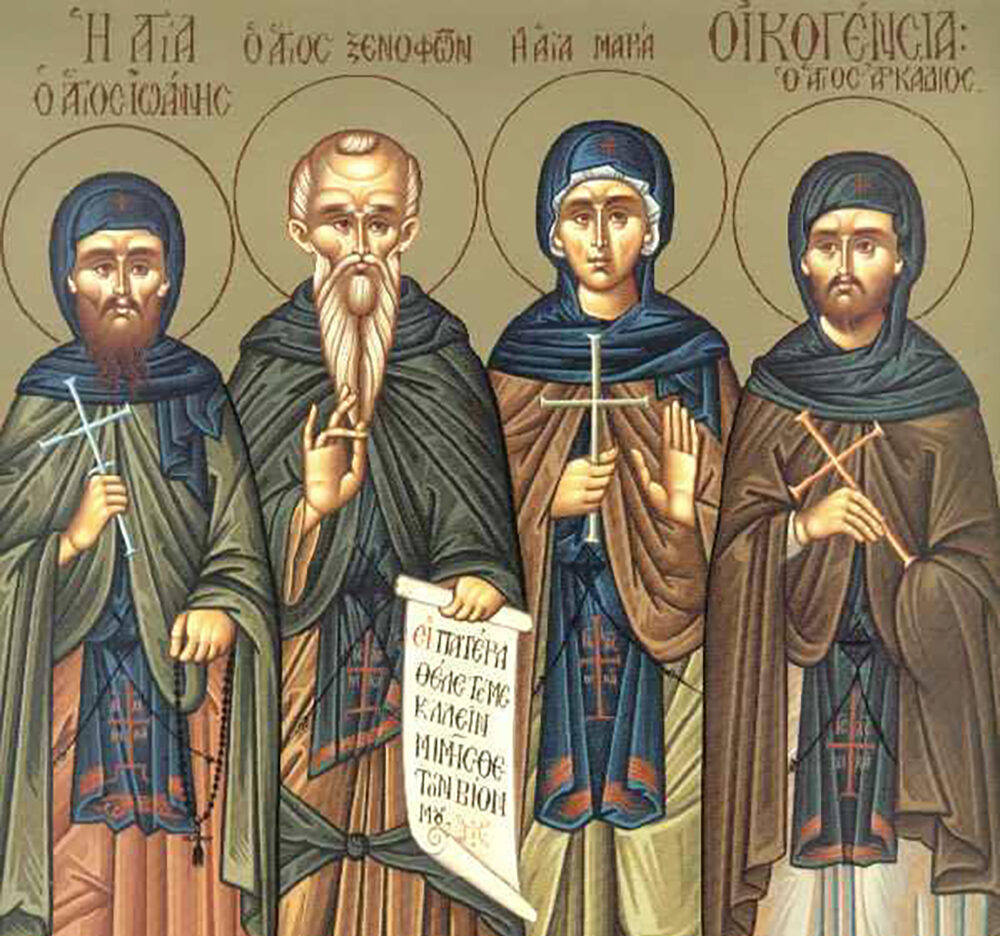 Όσιος Ξενοφών μετά της συμβίου του Μαρίας και των τέκνων Αρκαδίου και Ιωάννη