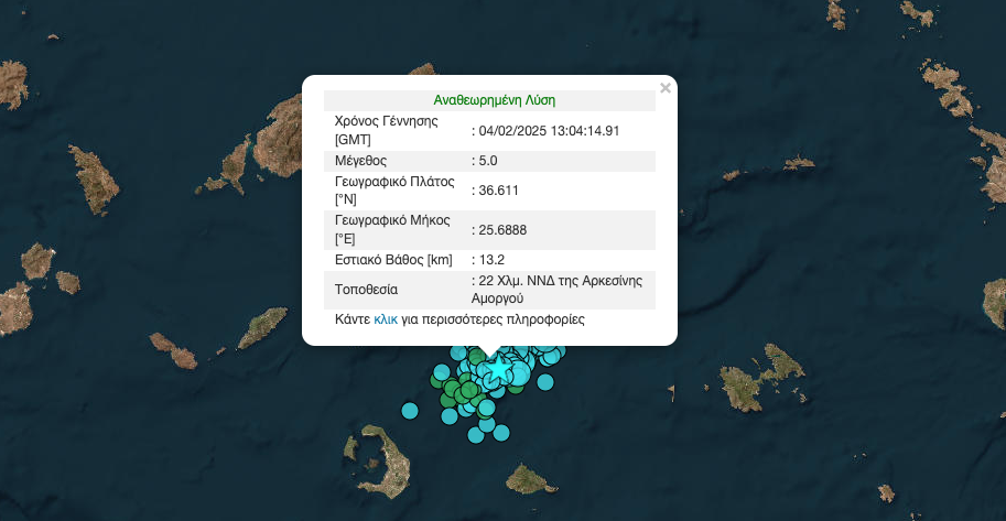 Ο σεισμός, που καταγράφηκε στις 15:04, είναι ο ισχυρότερος που έχει σημειωθεί στην περιοχή το τελευταίο διάστημα, με εστιακό βάθος 13,2 χιλιομέτρων.