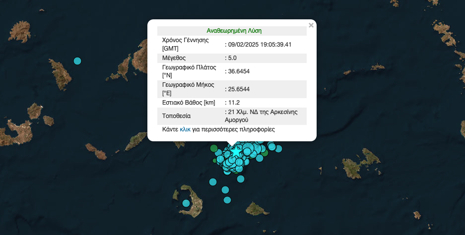 • 21:31, σεισμός 4,2 Ρίχτερ, 20 χιλιόμετρα νότια-νοτιοανατολικά της Αρκεσίνης Αμοργού