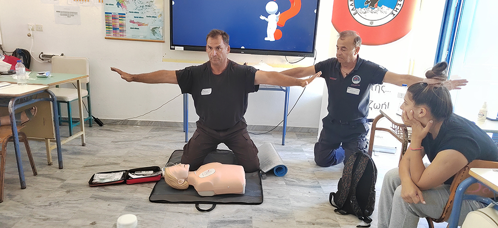 Οι εκπαιδευτές ΚΑΡΠΑ, της ΕΟΔ Κυκλάδων, ανταποκρινόμενοι σε αίτημα του Συλλόγου Γυναικών Νάουσας, πραγματοποίησαν Πιστοποιημένο από το Ευρωπαϊκό Συμβούλιο Αναζωογόνησης (ERC), Σεμινάριο, την Κυριακή 22-6-2025, στη Νάουσα.