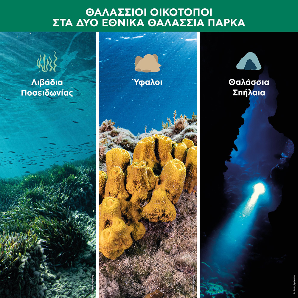 Τα δύο θαλάσσια πάρκα που θα τεθούν σε καθεστώς προστασίας ξεπερνούν σε συνολική έκταση τα 27.000 τετραγωνικά χιλιόμετρα, έκταση που αντιστοιχεί στο 32,6% του ελληνικού θαλάσσιου χώρου, με μοναδική βιοποικιλότητα που περιλαμβάνει απειλούμενα αλλά και ενδημικά είδη όπως τα λιβάδια Ποσειδωνίας, τα κοράλλια, την καρέτα – καρέτα, και τα θαλάσσια θηλαστικά.