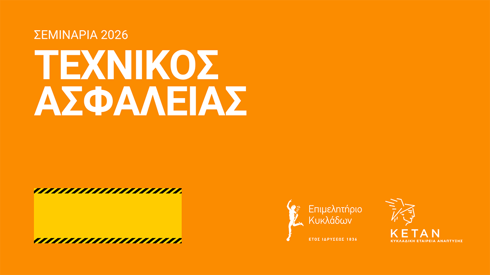 Το Επιμελητήριο Κυκλάδων ανακοινώνει τις καταληκτικές ημερομηνίες υποβολής ενδιαφέροντος για συμμετοχή στα επιμορφωτικά προγράμματα σε θέματα άσκησης καθηκόντων Τεχνικού Ασφαλείας που θα πραγματοποιηθούν το πρώτο εξάμηνο 2026 και αφορούν επιχειρήσεις των κλάδων εμπορίου και παροχής υπηρεσιών που ανήκουν στη χαμηλή επικινδυνότητα, Γ’ κατηγορία.