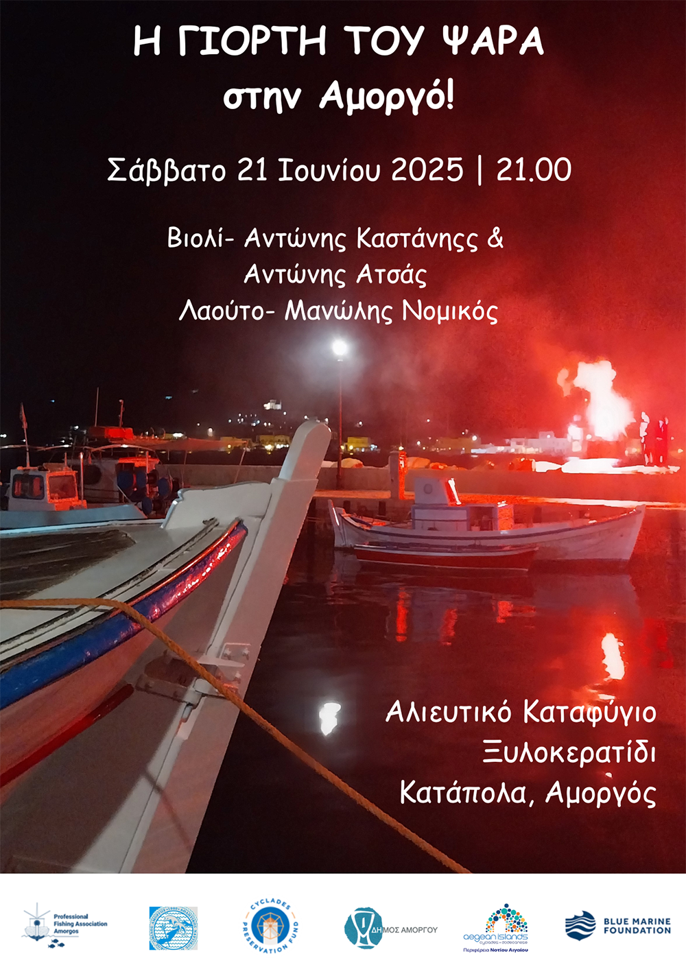 Σε εορταστικό πλέον κλίμα, αναμένεται, να λάβουν χώρα και οι εκδηλώσεις «Περιοχές Περιορισμού Αλιείας Αμοργού: η επόμενη μέρα για το νησί μας» και «Η Γιορτή του Ψαρά 2025» στα Κατάπολα Αμοργού Αμοργό το διήμερο 20-21 Ιουνίου 2025, οπότε και αναμένεται συμμετοχή εκπροσώπων αρμοδίων φορέων όσο και της τοπικής κοινωνίας της Αμοργού που στηρίζει ολόθερμα το εγχείρημα, ενώ φαίνεται πως δεν είναι λίγα τα νησιά και οι αλιευτικές κοινότητες των Κυκλάδων και ευρύτερα της Ελλάδας που αναμένουν τα απτά αποτελέσματα της πρωτοβουλίας ώστε να ακολουθήσουν τον δρόμο που άνοιξαν οι Αμοργιανοί ψαράδες.