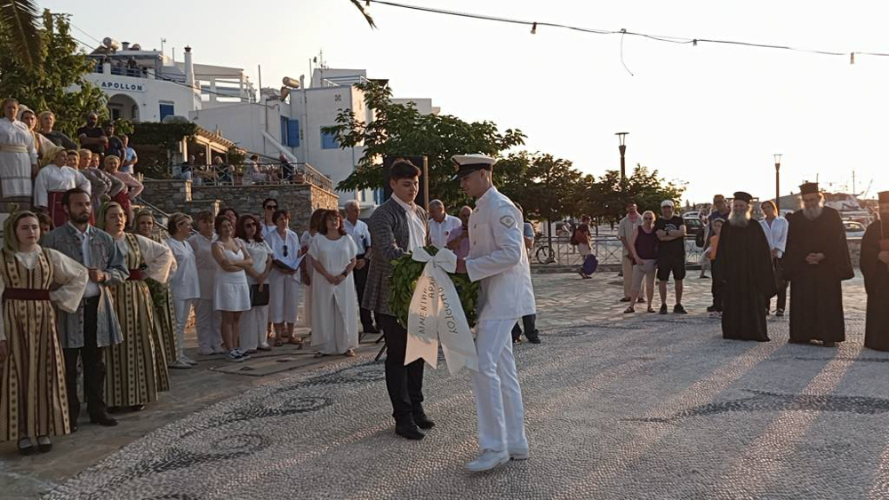 Η αυλαία του Αμοργιανού φεστιβάλ 2025 έπεσε την Δευτέρα του Αγίου Πνεύματος, 9 Ιουνίου 2025, στην Πλατεία της Αιγιάλης, όπου αρχικά τελέστηκε επιμνημόσυνη δέηση για τους πεσόντες αξιωματικούς της Κινάρου, παρουσία του Διοικητού του Αγίου Όρους κου Αλκιβιάδη Στεφανή, των θρησκευτικών και πολιτειακών αρχών του νησιού. Ακολούθησε η κατάθεση στεφάνων, κατά την οποία συγκίνησε και καταχειροκροτήθηκε ο πατέρας του ηρωικώς πεσόντος κυβερνήτου του μοιραίου ελικοπτέρου υποπλοίαρχου Αναστασίου Τουλίτση, και η απόδοση του Εθνικού Ύμνου από τη χορωδία Ορφέας Τρίπολης. Την τελετή πλαισίωσαν μέλη του Λυκείου Ελληνίδων Τρίπολης, δίνοντας ιδιαίτερο χρώμα με τις παραδοσιακές τους φορεσιές.