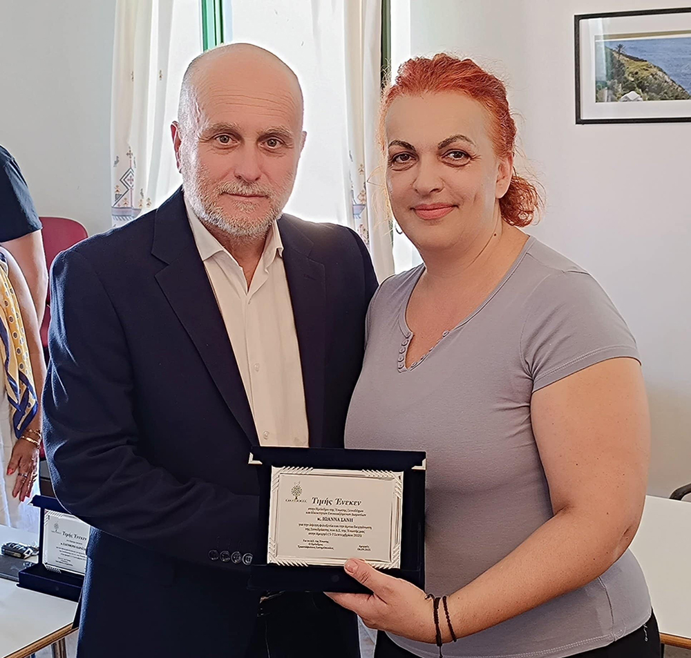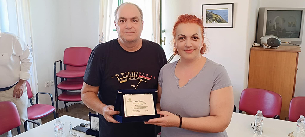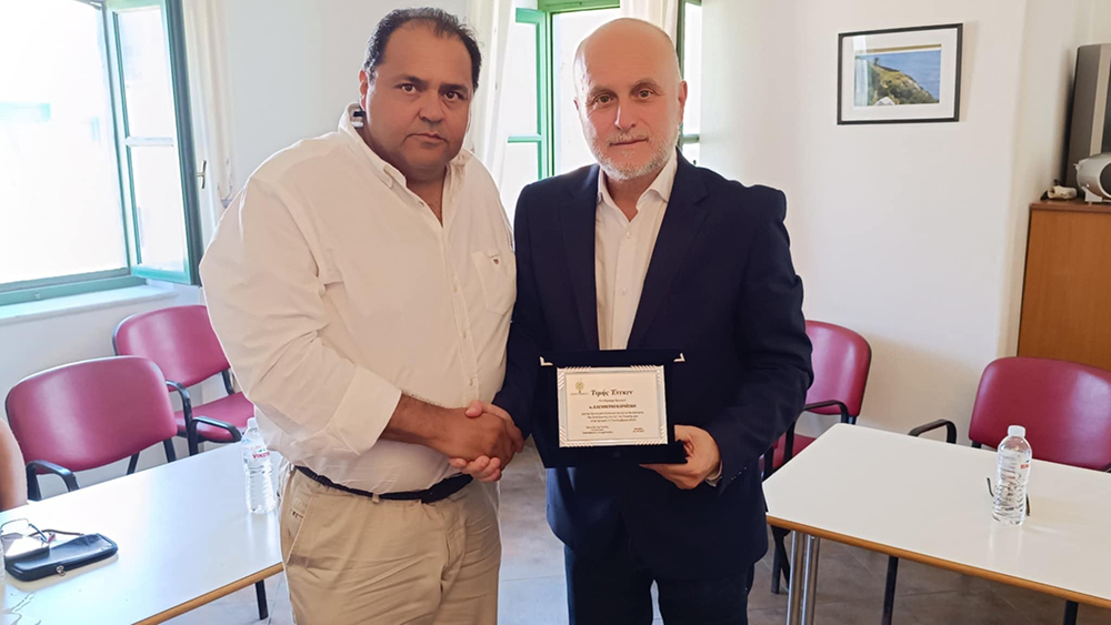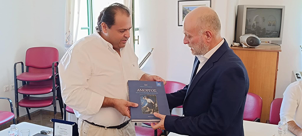 Εκ μέρους της Ένωσης ο Πρόεδρος Τριαντάφυλλος Σωτηρόπουλος ευχαρίστησε θερμά το Δήμαρχο Αμοργού κ. Ελευθέριο Καραΐσκο και την Πρόεδρο των Ξενοδόχων Αμοργού κα Ιωάννα Σαννή για την αβραμιαία Αμοργιανή φιλοξενία και σε υπόμνηση του γεγονότος επέδωσε αναμνηστική πλακέτα στο Δήμαρχο Αμοργού και στην Πρόεδρο της Ένωσης Ξενοδόχων Ιδιοκτητών Ενοικιαζόμενων Δωματίων Αμοργού.