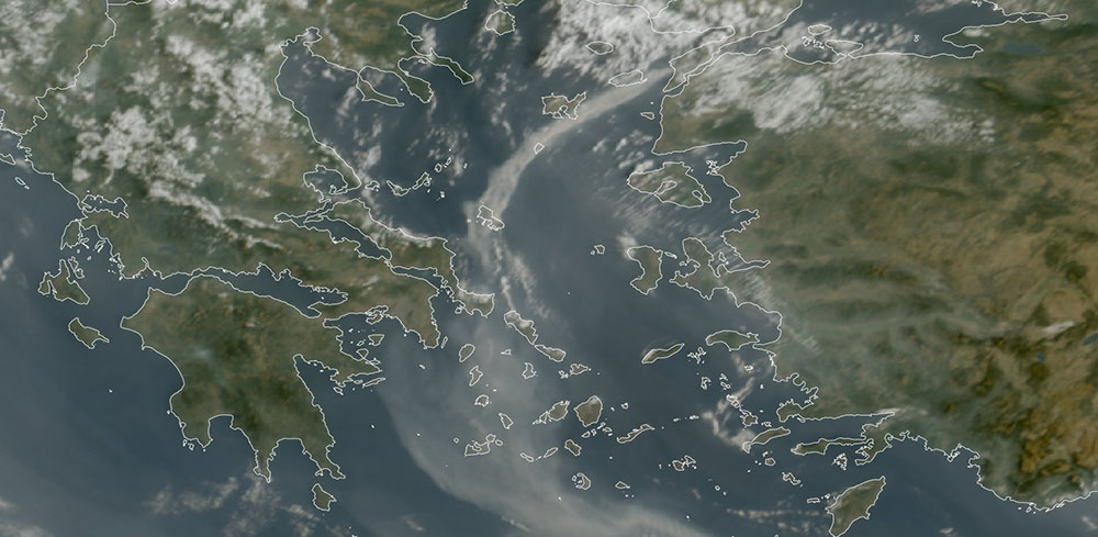 Πολύ γρήγορη μεταφορά του καπνού , λόγω των πολύ ενισχυμένων ΒΑ ανέμων στο ΒΑ Αιγαίο.