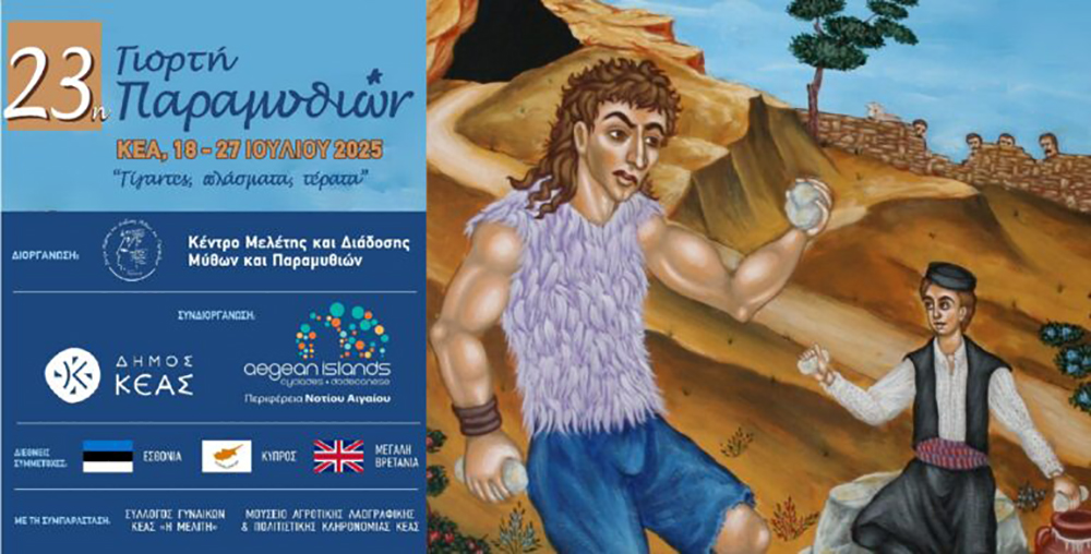 Η Γιορτή Παραμυθιών έρχεται για 23η χρονιά στην Κέα, από τις 18 έως τις 27 Ιουλίου 2025. Το θέμα της φετινής διοργάνωσης, «Γίγαντες, Πλάσματα και Τέρατα», καλεί μικρούς και μεγάλους σε ένα ταξίδι όπου το παραμύθι γίνεται καθρέφτης της εποχής μας, μέσα από 16 ξεχωριστές εκδηλώσεις.