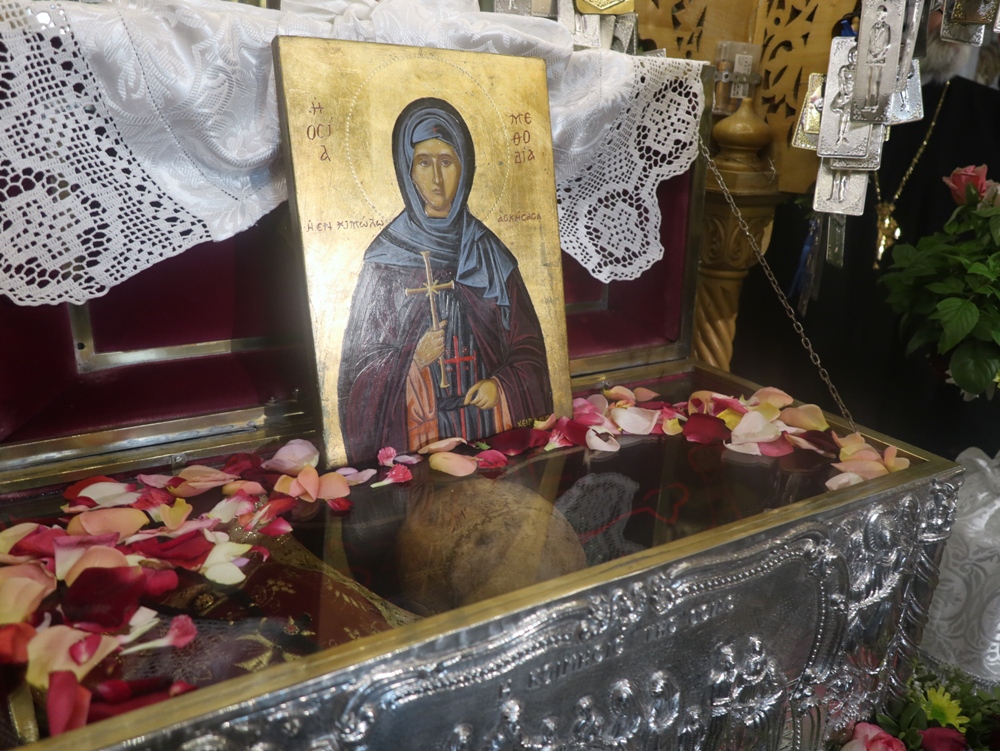 Εξ αφορμής δε της προσελεύσεως πλήθους πιστών, επεσήμανε ότι χρόνο με το χρόνο το όνομα της Οσίας γίνεται γνωστό και τιμάται από όλο και περισσότερους πιστούς, οι οποίοι προσέρχονται να προσκυνήσουν τα τίμια Λείψανα της και τις οστορηθείσες ιερές Εικόνες της.