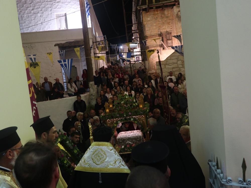 Μετά το πέρας του Εσπερινού, έλαβε χώρα πάνδημη λιτανεία της ιεράς Εικόνος και του Τιμίου Λειψάνου της Οσίας.