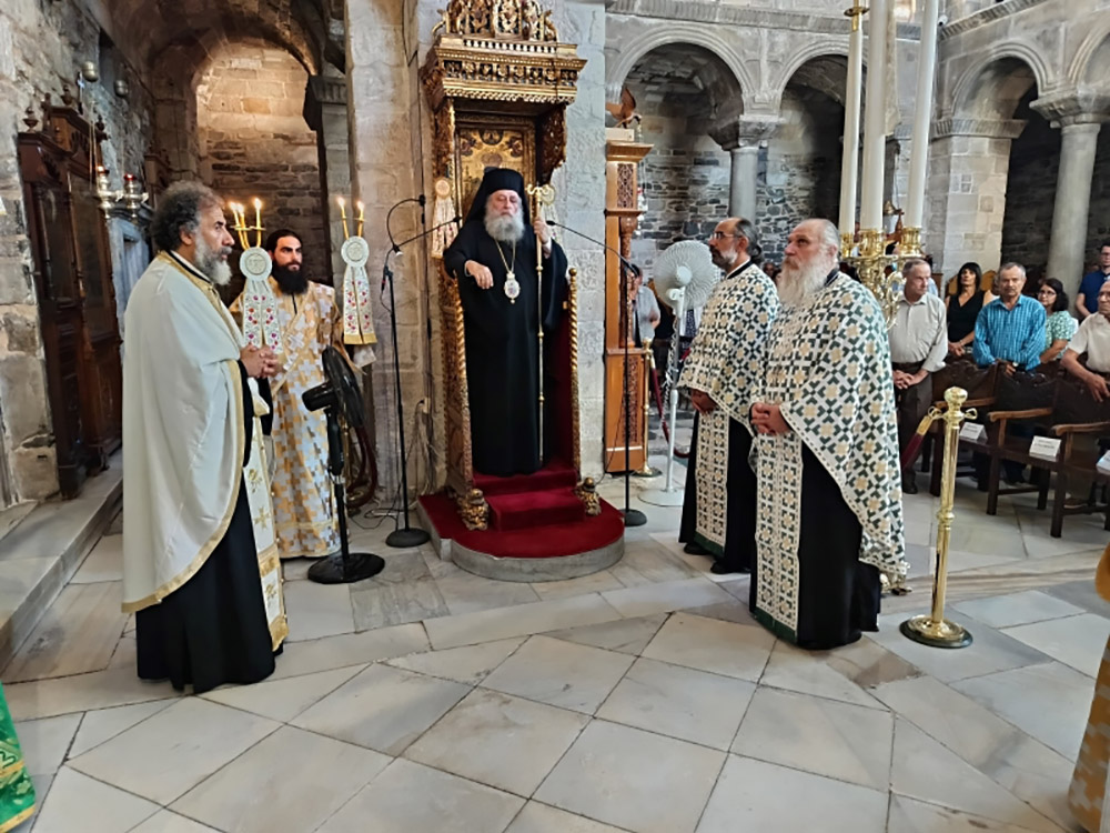 Της Ακολουθίας χοροστάτησε ο Σεβασμιώτατος Ποιμενάρχης μας, Μητροπολίτης Παροναξίας κ. Καλλίνικος, με τη συμμετοχή των πατέρων του Ιερού Προσκυνήματος, Πρωτοπρ. π. Στυλιανού Μπιζά (Αντιπροέδρου της Διοικούσης Επιτροπής του Ι.Π.) και Πρωτοπρ. π. Χρήστου Πετρόπουλου, του Πρωτοπρ. π. Νεκταρίου Μαμαλούγκου, ο οποίος τυγχάνει Κληρικός της Ιεράς Αρχιεπισκοπής Αθηνών και Καθηγητής του Τμήματος Φυσικής του Εθνικού και Καποδιστριακού Πανεπιστημίου Αθηνών (ο οποίος και κήρυξε τον θείο λόγο), του Αρχιδιακόνου π. Νεκταρίου Σκουλάτου και του Διακόνου π. Δαυίδ Καρυτινού.