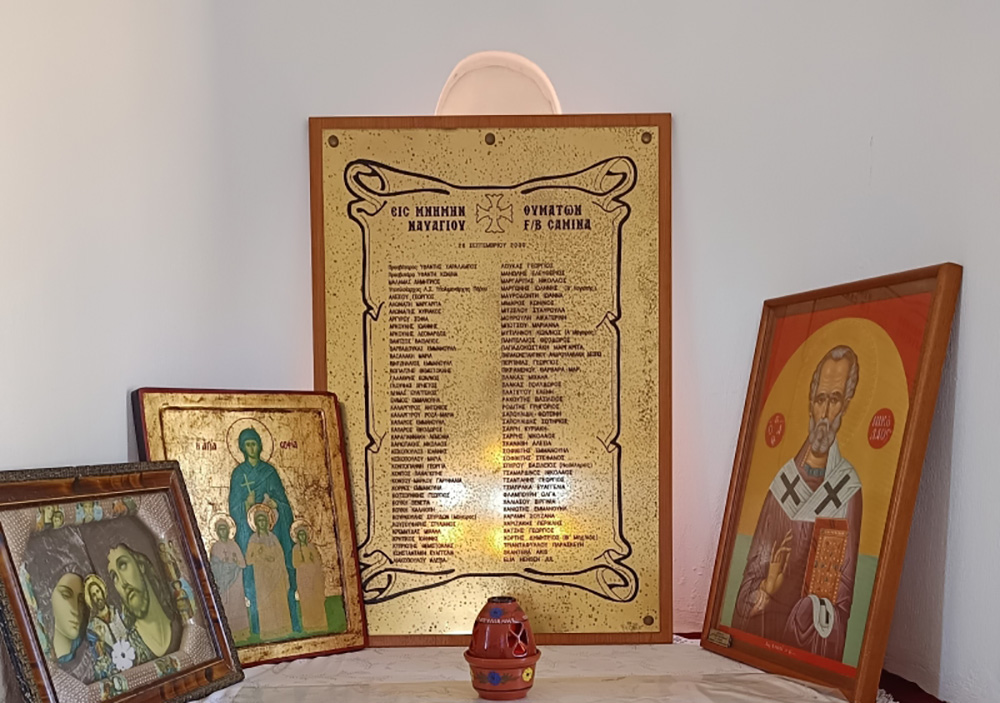 Προ της Απολύσεως προέστη του Μνημοσύνου των 82 απολεσθέντων αδελφών μας και εν συνεχεία μετέβη στο Ακρωτήριο «Κορακιές» όπου στο ανεγερθέν Παρεκκλήσιο, τέλεσε Τρισάγιο υπέρ αναπαύσεως των ψυχών τους.