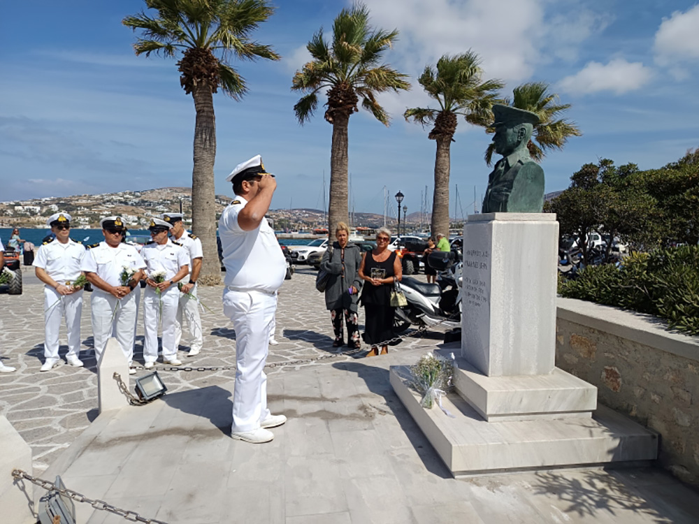 Ακολούθως ο Σεβασμιώτατος, μετέβη στο σημείο όπου βρίσκεται ο ανδριάντας του τότε Λιμενάρχη Πάρου, Δημητρίου Μάλαμα του Ναξίου, ο οποίος άφησε την τελευταία του πνοή την νύκτα εκείνη του ναυαγίου, προσφέροντας θυσιαστικά τις υπηρεσίες του και τέλεσε Τρισάγιο υπέρ αναπαύσεως της ψυχής του.