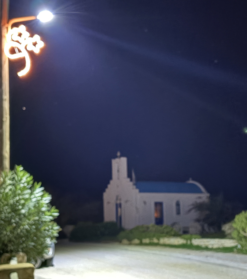 Παράλληλα, έχουν στηθεί χριστουγεννιάτικα φωτιστικά αστέρια, δημιουργώντας ζεστή και γιορτινή ατμόσφαιρα για κατοίκους και επισκέπτες.