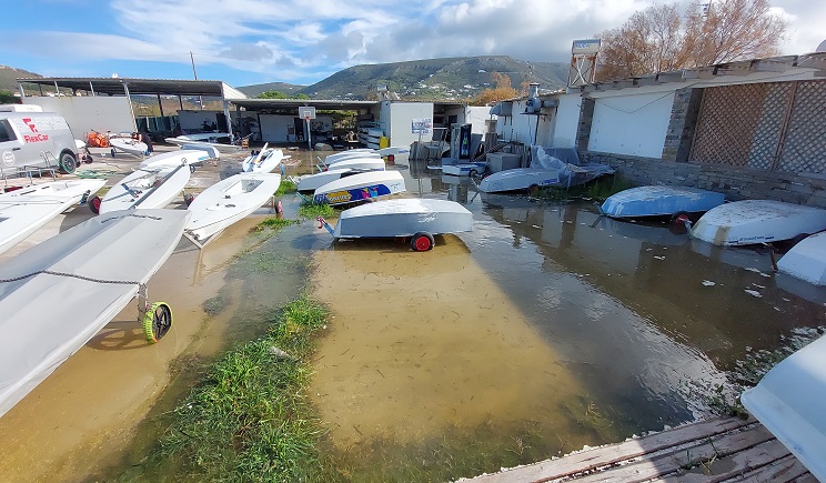 Πλημμύρισε ο Ναυτικός Όμιλος Πάρου από τους ισχυρούς νοτιάδες στην Παροικία (video+φώτος)