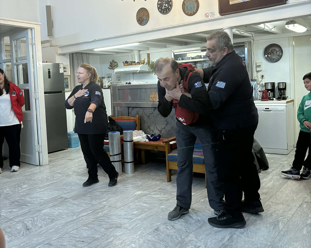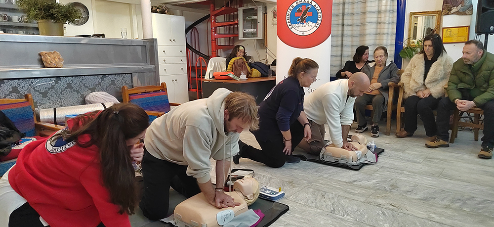 Το σεμινάριο περιελάμβανε την τεχνική της Καρδιοπνευμονικής Αναζωογόνησης με χρήση Αυτόματου Εξωτερικού Απινιδωτή, Αντιμετώπιση Πνιγμονής και Θέση Ασφαλείας.