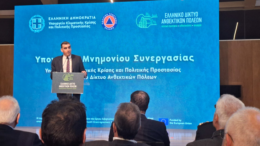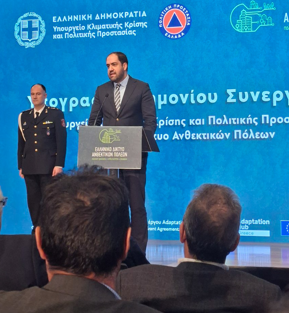 Τη Δευτέρα 30 Μαρτίου 2026, στο Ωδείο Αθηνών, πραγματοποιήθηκε η τελετή υπογραφής Μνημονίου Συνεργασίας μεταξύ του Υπουργείου Κλιματικής Κρίσης και Πολιτικής Προστασίας και του Ελληνικού Δικτύου Ανθεκτικών Πόλεων.