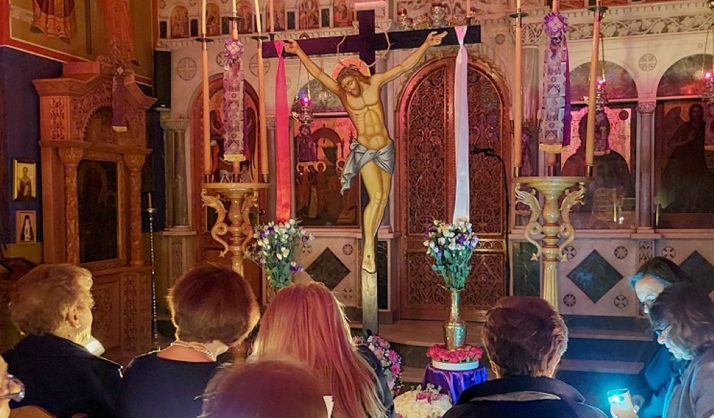 Ήταν το Μοιρολόι της Παναγιάς, ο βαρύς θρήνος της Πανάγιας Μητέρας για τον Εσταυρωμένο Υιό της που έκανε την ατμόσφαιρα μέσα στο ναό μοναδικά μυσταγωγική και βαθιά κατανυκτική.