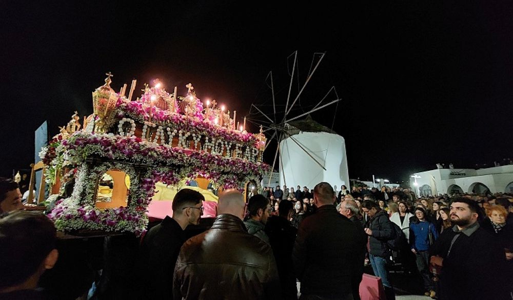 Στην Παροικία με τη συμμετοχή πλήθους πιστών, τελέστηκε τα μεσάνυχτα η Περιφορά του Επιταφίου του Ι.Ν. Παναγίας Εκατονταπυλιανής.