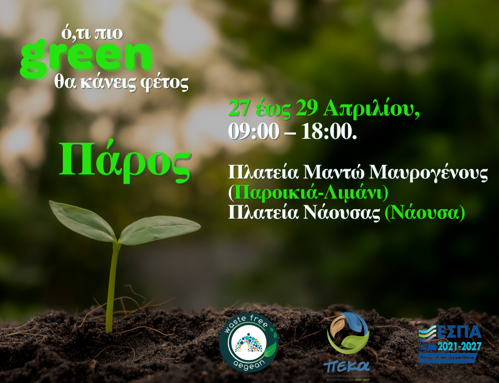 Ο ΦοΔΣΑ Νοτίου Αιγαίου καλεί όλους τους κατοίκους της Πάρου να αξιοποιήσουν αυτή τη δυνατότητα και να γίνουν μέρος μιας κοινής προσπάθειας για λιγότερα απόβλητα και καλύτερη ποιότητα ζωής στα νησιά μας.