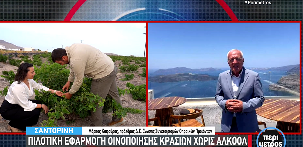 Ο Μάρκος Καφούρος, πρόεδρος Δ.Σ Ένωσης Συνεταιρισμών Θηραϊκών προϊόντων μίλησε για το εγχείρημα στην εκπομπή «Περίμετρο» της ΕΡΤ3.