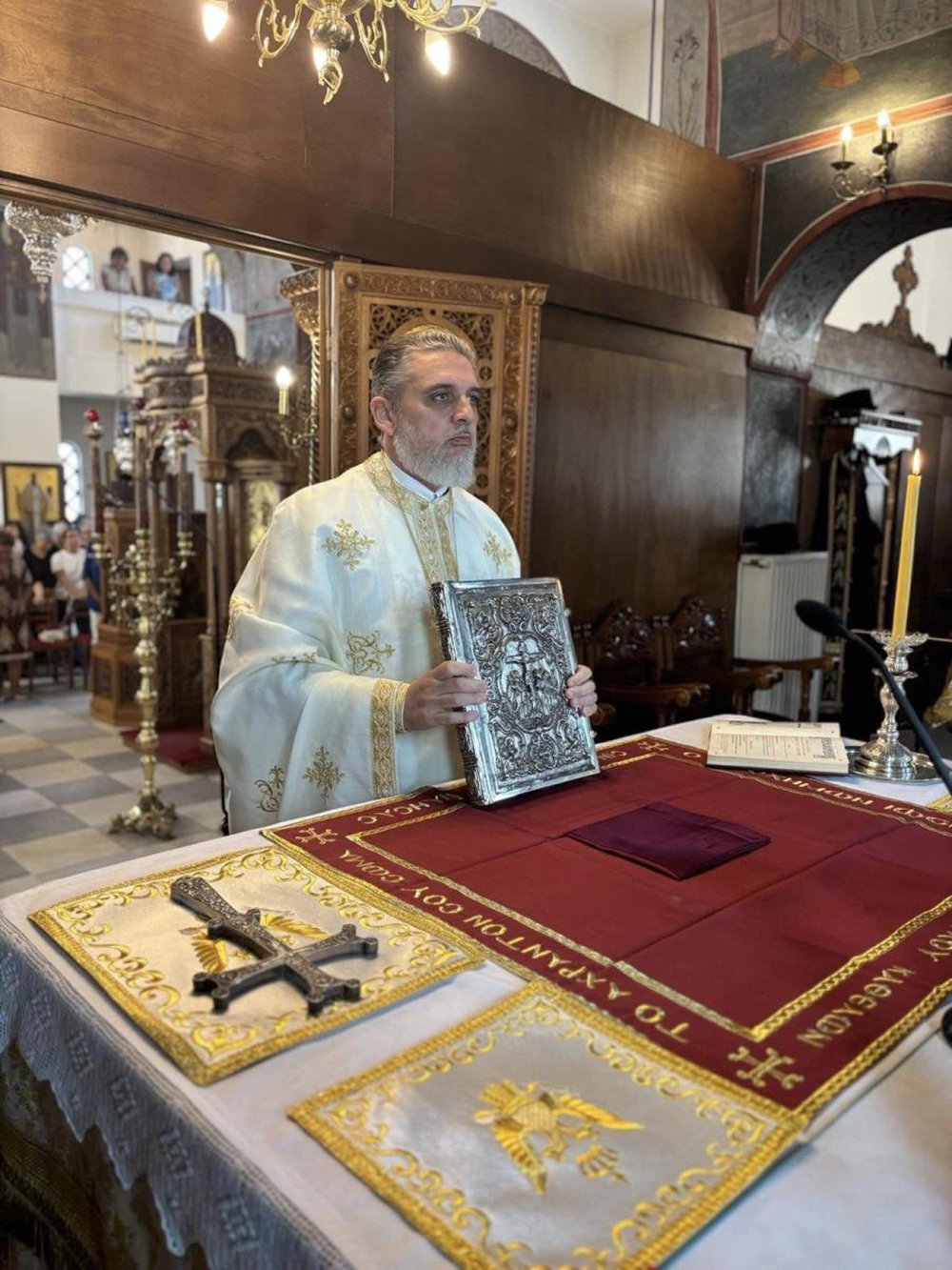 Μετά το πέρας της Θείας Λειτουργίας ο Σεβασμιώτατος Ποιμενάρχης κ. Αμφιλόχιος προέβη στην χειροθεσία του ευλαβεστάτου κ. Σωκράτους Γαβαλά σε αναγνώστη, ευλόγησε τα προσφερθέντα εδέσματα και ευχήθηκε σε όλους χρόνια πολλά, ευλογημένα και Παναγιοσκέπαστα.