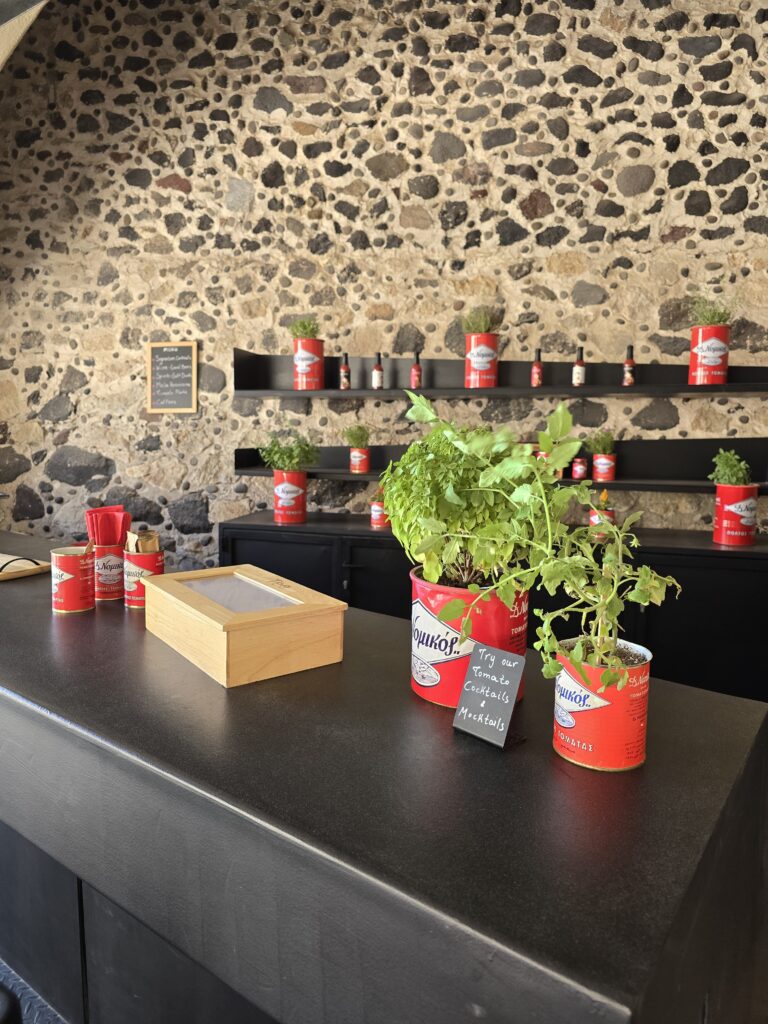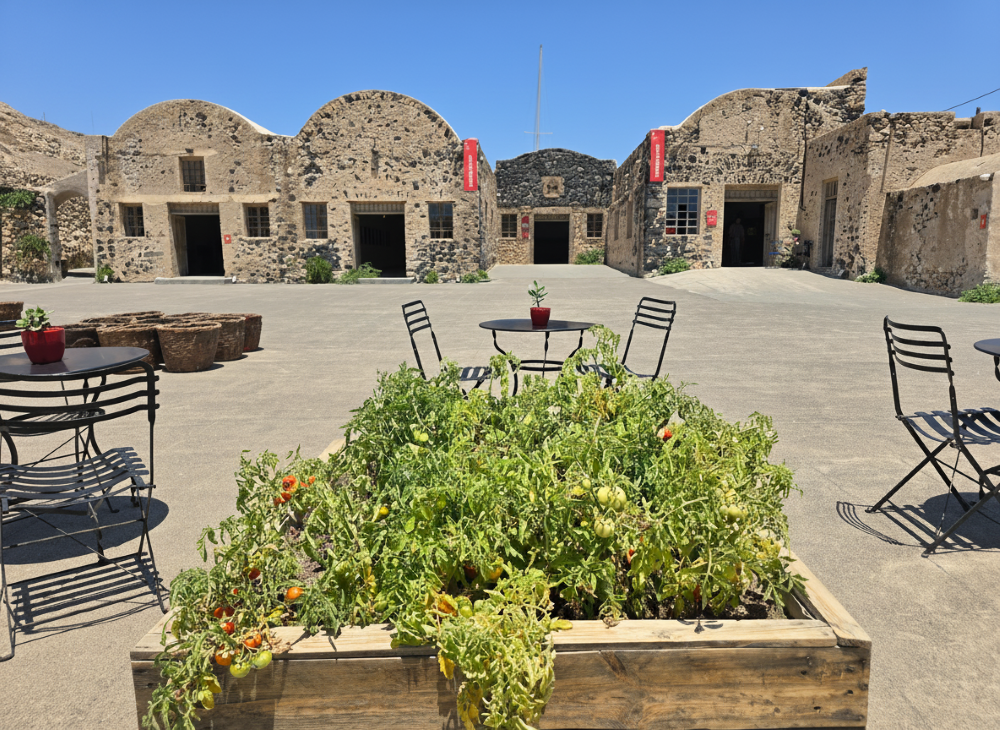 Οι επισκέπτες έχουν την ευκαιρία να ανακαλύψουν τη μοναδική διαδρομή της σαντορινιάς τομάτας, από την καλλιέργεια έως τη μεταποίηση και την παραγωγή τοματοπελτέ, γνωρίζοντας ταυτόχρονα τη βιομηχανική κληρονομιά της Σαντορίνης.