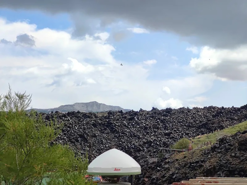 Καλώδια, φωτοβολταϊκά πάνελ και τοπογραφικά όργανα που μοιάζουν με τηλεσκόπια και μετρούν γωνίες και αποστάσεις «αγκαλιάζουν» την καλντέρα, γίνονται ένα με το ηφαιστειακό τοπίο και προσπαθούν να καταγράψουν οτιδήποτε θα μπορούσε να προμηνύει ένα νέο φαινόμενο.
