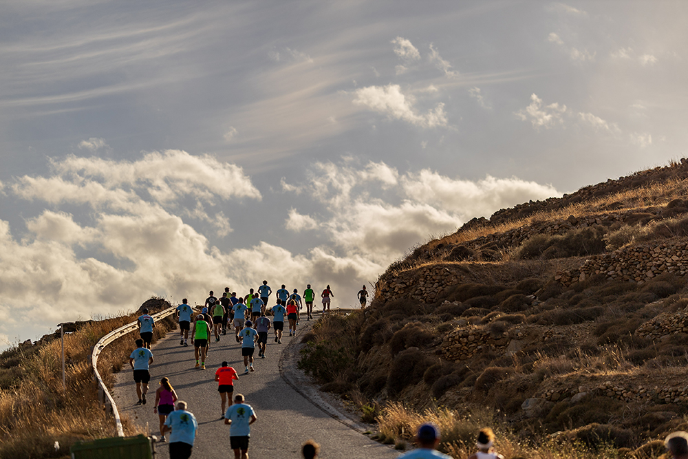 Ο αγώνας που κάνει την διοργάνωση ξεχωριστή, είναι οι αγώνες δρόμου 5 και 10χλμ που διεξάγονται το απόγευμα του Σαββάτου (13/9) στη διάρκεια του ηλιοβασιλέματος, με τους συμμετέχοντες να έχουν την ευκαιρία να τρέξουν σε μια μοναδική διαδρομή, παράλληλα με τη θάλασσα περιμετρικά του κόλπου του Κουταλά, διασχίζοντας τις πανέμορφες παραλίες της Βαγιάς, του Γανέματος και του Κουταλά απολαμβάνοντας συγχρόνως το μοναδικό ηλιοβασίλεμα της περιοχής από την μία και την άγρια ομορφιά του Κυκλαδίτικου τοπίου από την άλλη.