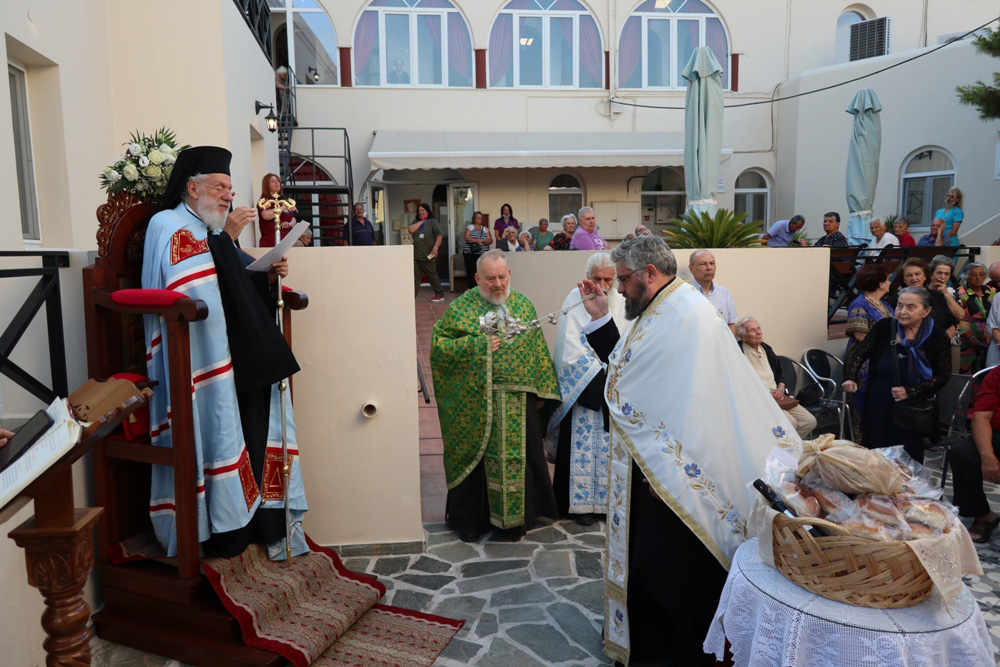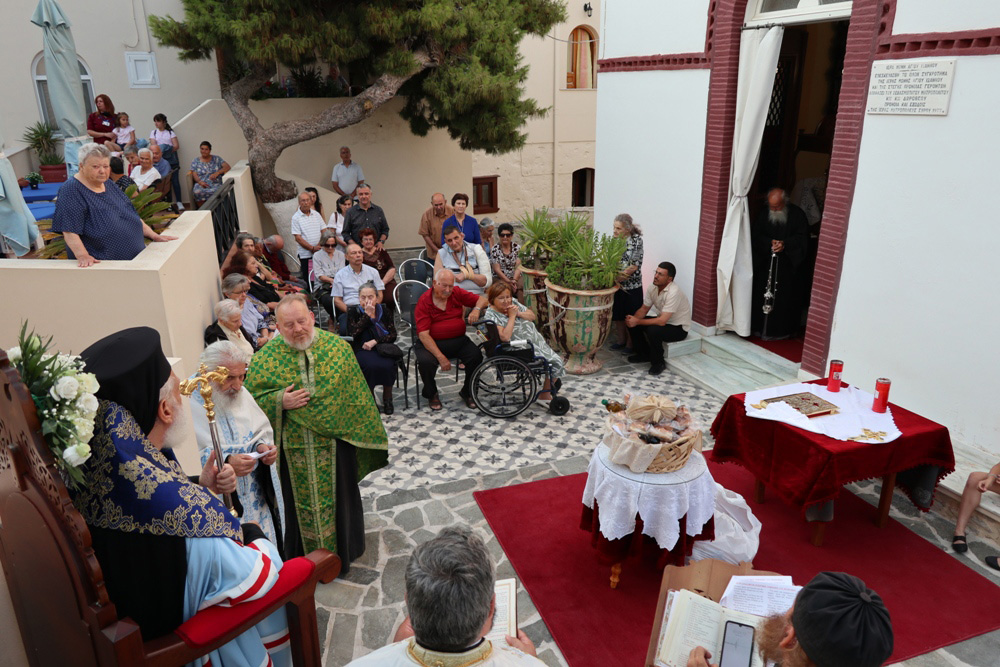 Αναφέρθηκε, επίσης, στον στεγαζόμενο στις εγκαταστάσεις της Ιεράς Μονής Οίκο Ευγηρίας της Ιεράς Μητροπόλεως, ο οποίος από το 1977 και έως σήμερα περιθάλπει με αγάπη επί 24ώρου βάσεως ανιάτως πάσχοντες, ανέστιους ή άπορους γέροντες και γερὀντισσες.