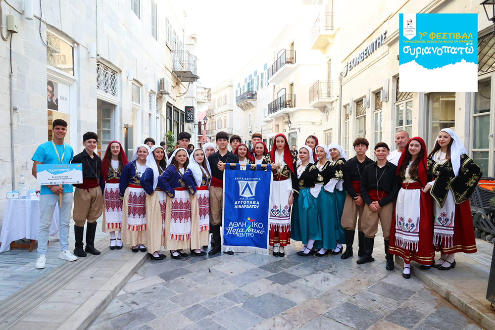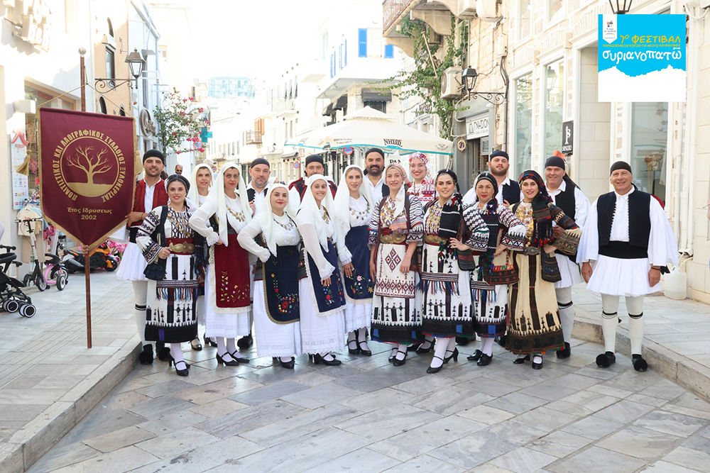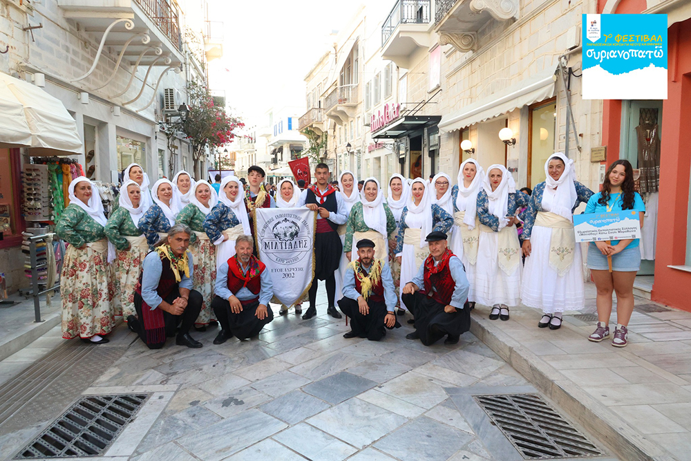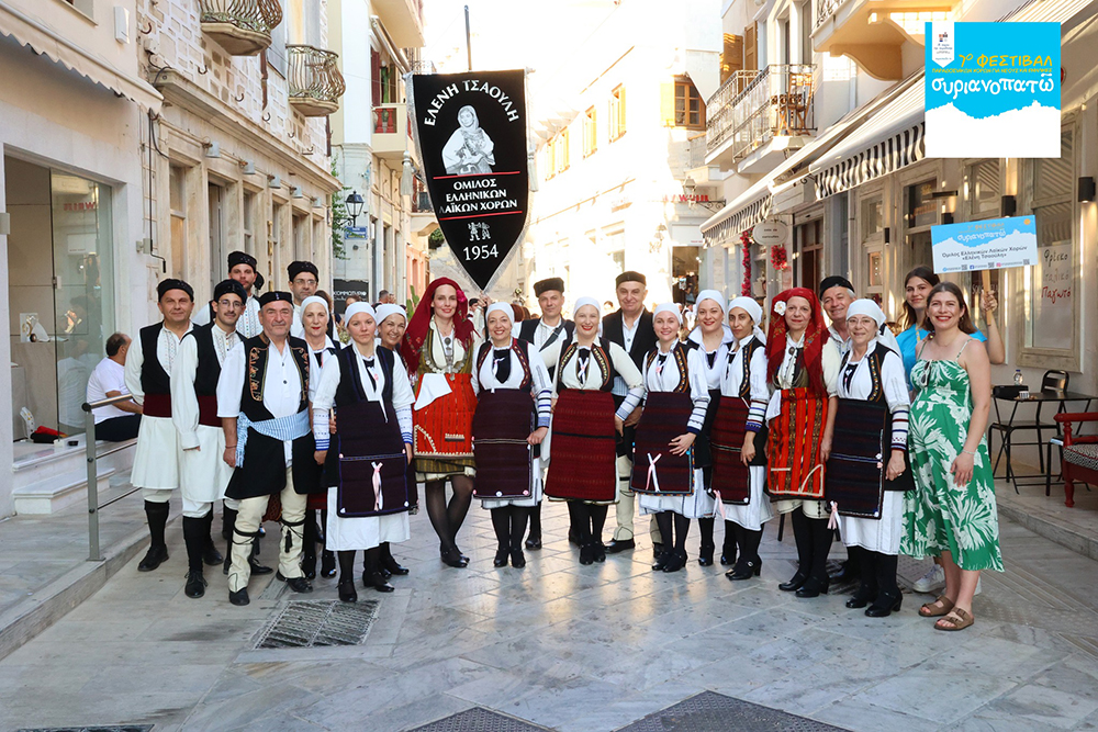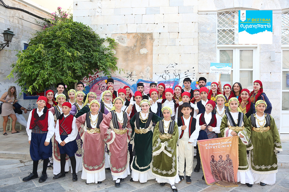 Το 7ο φεστιβάλ παραδοσιακών χορών «Συριανοπατῶ» επέστρεψε δυναμικά, γεμίζοντας την καρδιά της Σύρου με ρυθμούς από την Κρήτη μέχρι τον Έβρο, και δίνοντας φωνή στην παράδοση μέσα από τα βήματα και τα χαμόγελα περισσότερων από 1.000 συμμετεχόντων – χορευτικών συλλόγων από όλη την Ελλάδα και την Κύπρο.