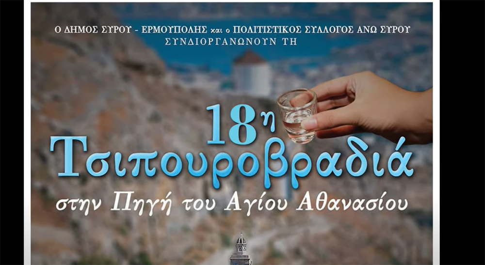 Στην Πηγή του Αγίου Αθανασίου Σύρου πραγματοποιήθηκε η 18η Τσιπουροβραδιά, μια πολιτιστική εκδήλωση που μετράει πολλά χρόνια ζωής και διοργανώνεται από τον Πολιτιστικό Σύλλογο Άνω Σύρου και τον Δήμο Σύρου-Ερμούπολης.