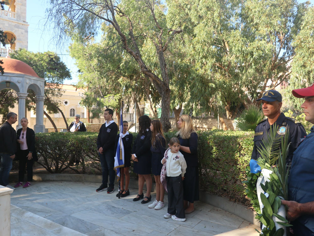 Παρέστησαν ο Δήμαρχος Σύρου-Ερμούπολης κ. Αλέξιος Αθανασίου, ο οποίος και εξεφώνησε τον Πανηγυρικό της ημέρας, ο Θεματικός Αντιπεριφερειάρχης Μεταφορών κ. Μ. Δαδάος, ως εκ προσώπου της Περιφέρειας Ν. Αιγαίου, Αξιωματικοί της Ελληνικής Αστυνομίας, του Λιμενικού Σώματος και της Πυροσβεστικής Υπηρεσίας, Απόστρατοι Έφεδροι Αξιωματικοί, εκπρόσωποι κομμάτων, μαθητές Δημοτικού Σχολείου με τη σημαία τους και πολλοί εκκλησιασθέντες και Ερμουπολίτες.
