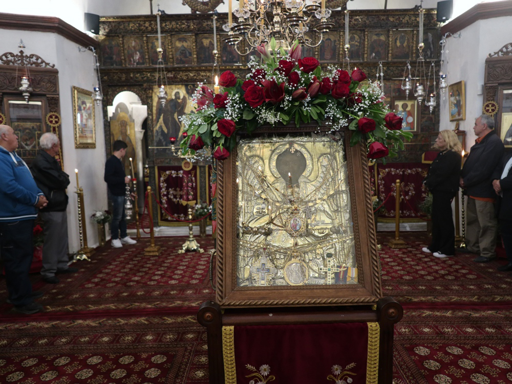 Στη συνέχεια τελέσθηκε λιτανεία της αγίας εικόνος του Ταξιάρχη Μιχαήλ προς το παρακείμενο Κοιμητήριο, όπου εψάλη Τρισάγιο για τους εκεί αναπαυομένους.
