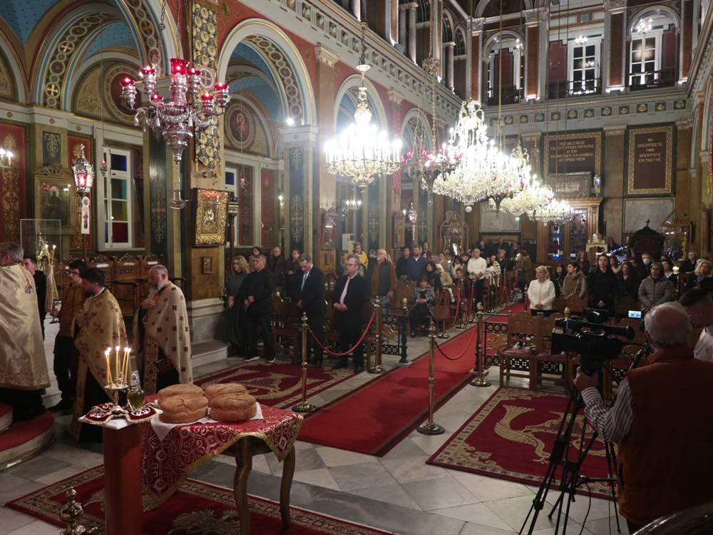 Αφού ευχαρίστησε τους Εφημέριους του Ναού για τον ευπρεπισμό της Ακολουθίας, ευχήθηκε στους παρισταμένους για τις άγιες ημέρες του Δωδεκαημέρου και τους προέτρεψε να παρακολουθήσουν την Χριστουγεννιάτικη Θεία Λειτουργία.