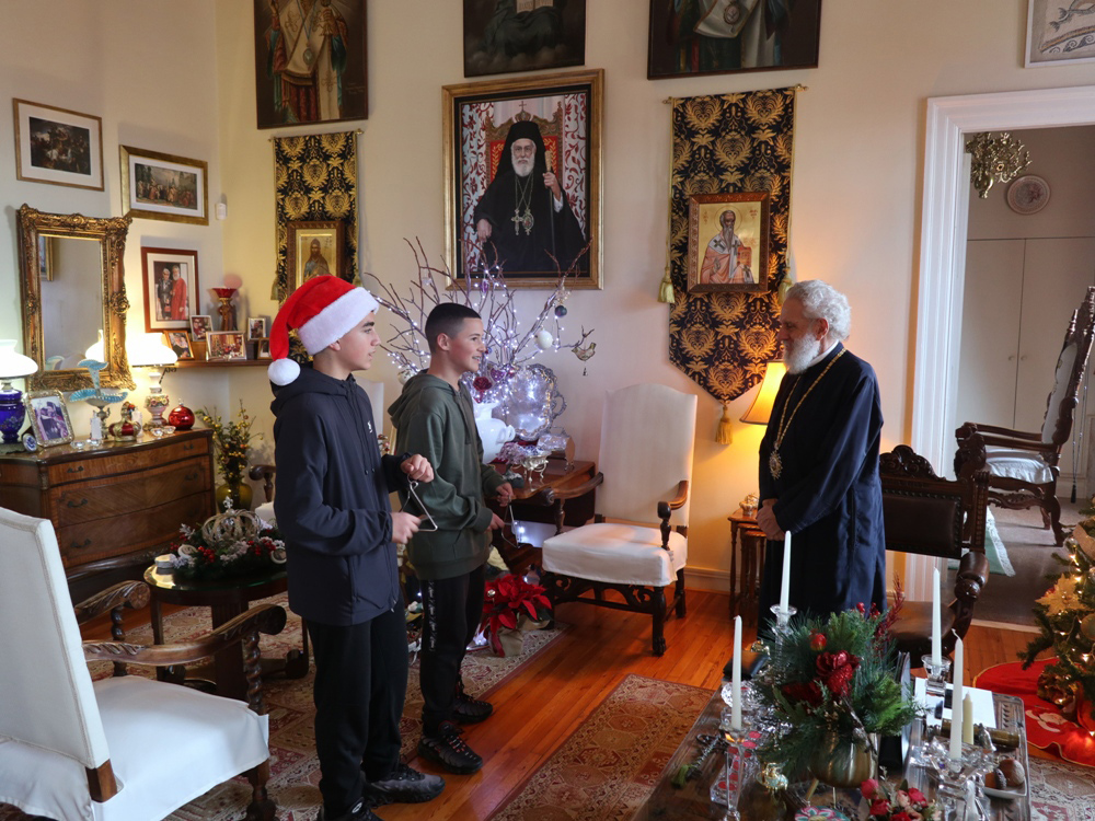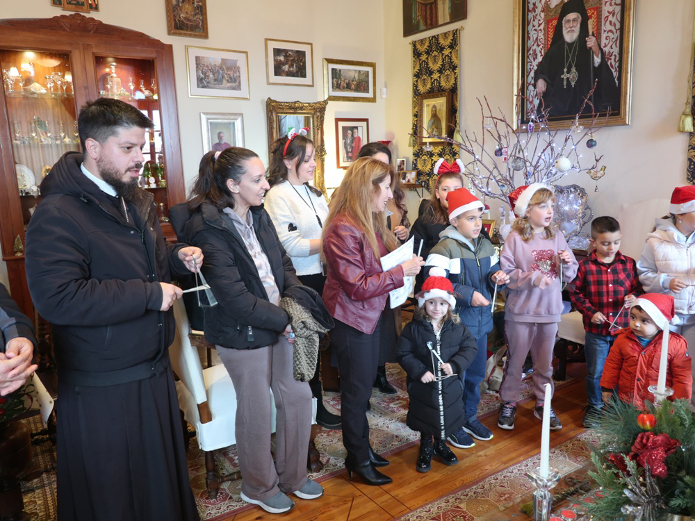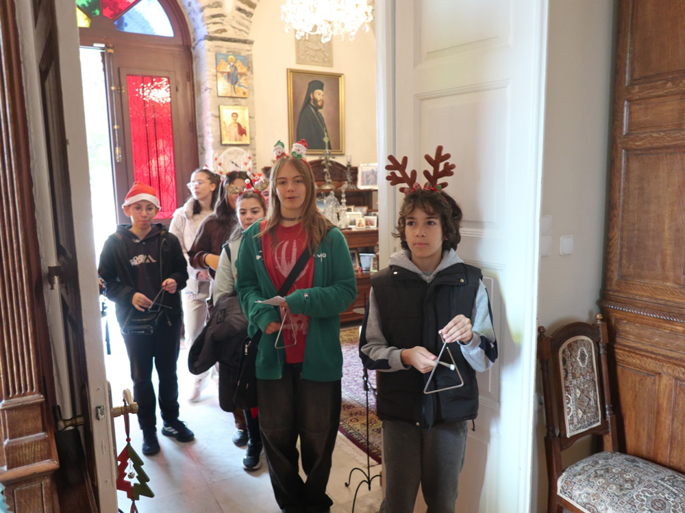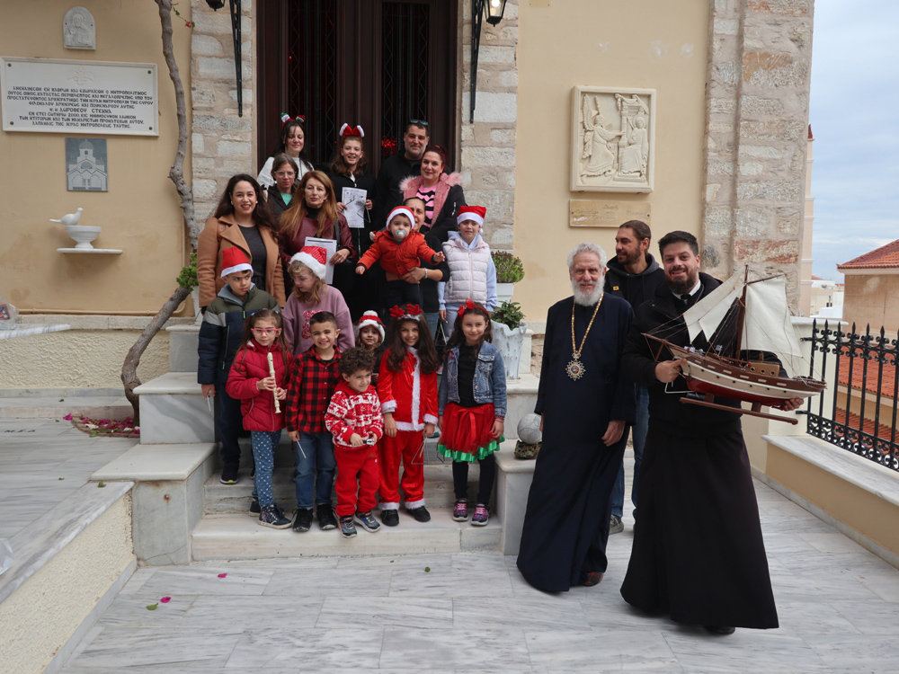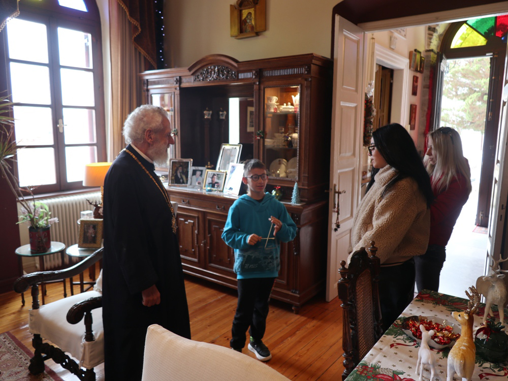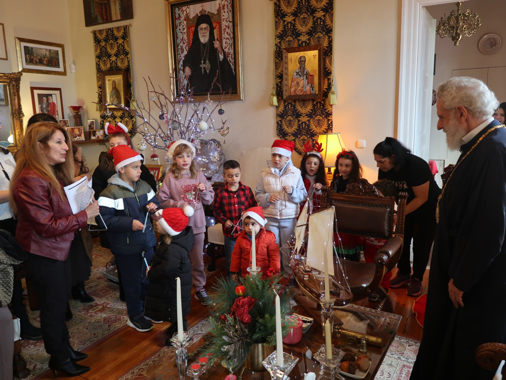 Από το πρωί, χθες, παραμονή των Χριστουγέννων, το Επισκοπείο Ερμουπόλεως αντήχησε από τα τραγούδια, τις ευχές και τα κάλαντα παιδιών και την αγάπη μεμονωμένων προσώπων, εκπροσώπων τοπικών Αρχών, Συλλόγων και Φορέων, που προσήλθαν και με αγάπη ευχήθηκαν στον Σεβασμιώτατο κ. Δωρόθεο Β’, ο οποίος ανταπέδωσε τις ευχές όλων, ευχόμενος με τη σειρά του στα παιδιά καλή πρόοδο και σε όλους υγεία, ευημερία και κάθε παρά Κυρίου ευλογία στη ζωή και τα έργα τους.