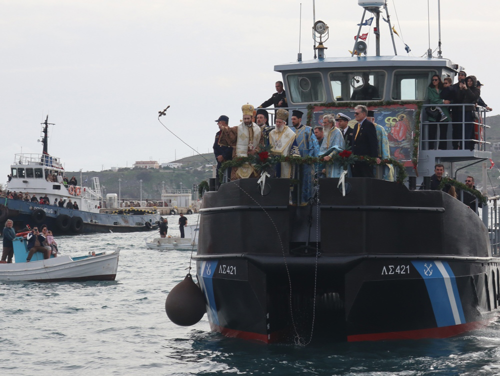 Μετά και την τελετή του Μεγάλου Αγιασμού, εγένετο λαμπρή λιτάνευση του Κουβουκλίου με τον Τίμιο Σταυρό, φερομένου επί των ώμων ανδρών του Λιμενικού Σώματος, κατά το έθος και με πλήρη Εκκλησιαστική τάξη.