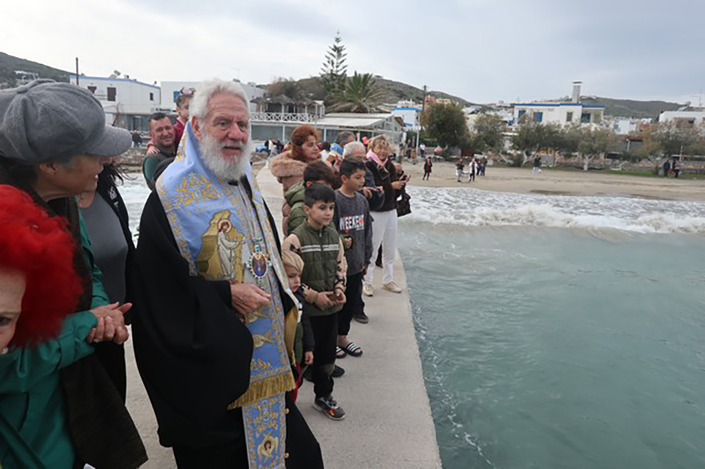 Παρά τις δυσοίωνες προβλέψεις, που και εφέτος διαψεύστηκαν, η Ερμούπολη εόρτασε χθες τα Θεοφάνεια, υπό απαλό νέφος προστασίας των πιστών από τις ηλιακές ακτίνες.