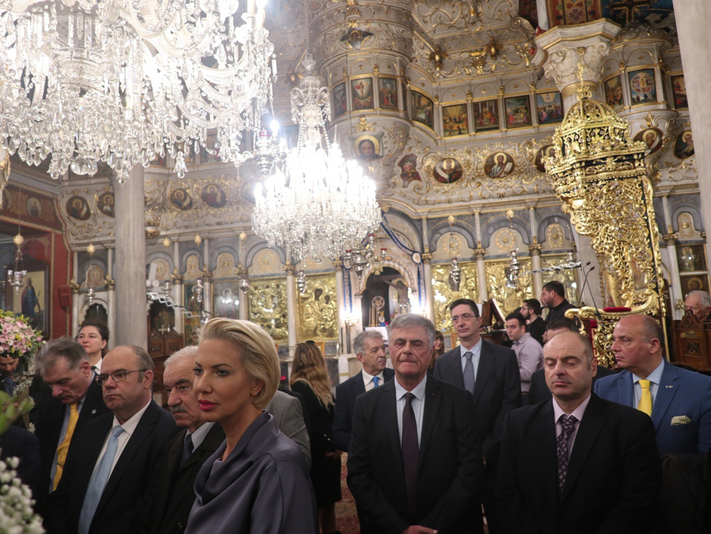 Στον Ιερό Μητροπολιτικό Ναό της Μεταμορφώσεως του Σωτήρος τελέσθηκε χθες, ημέρα των Αγίων Θεοφανείων, η Θεία Λειτουργία, την οποία ιερούργησε ο Σεβασμιώτατος κ. Δωρόθεος Β’ και στην οποία παρέστησαν η Βουλευτής Κυκλάδων κα Αικ. Μονογυιού , ο Χωρικός Αντιπεριφερειάρχης Κυκλαδων κ. Γ. Λεονταρίτης, ο Δήμαρχος Σύρου-Ερμούπολης κ. Αλέξ. Αθανασίου, ο Διοικητής της 6ης Περιφέρειας Λιμενικού Σώματος, ο Λιμενάρχης Σύρου και Αξιωματικοί του Λιμενικού Σώματος, ο Στρατηγός των Αστυνομικών Περιφερειακών Υπηρεσιών Ν. Αιγαίου και Αξιωματικοί της Ελληνικής Αστυνομίας, η Διοικήτρια και Σπουδαστές η Ακαδημίας Εμπορικού Ναυτικού Σύρου, ο Διοικητής και Αξιωματικοί των Πυροσβεστικών Υπηρεσιών, ο Υποδιοικητής και Αξιωματικοί της Ναυτικής Βάσης Σύρου, ο Διοικητής και Αξιωματικοί του Τάγματος Εθνοφυλακής Σύρου και πλήθους πιστών.