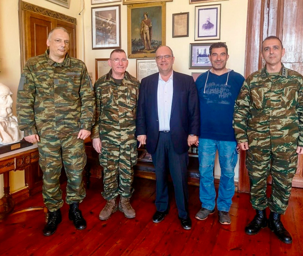 Τον Υποστράτηγο συνόδευαν ο Συνταγματάρχης κ. Λάμπρος Σερκίζης και ο Αντισυνταγματάρχης κ. Ευστράτιος Τόγιας, ενώ παρών στη συνάντηση ήταν και ο Αντιδήμαρχος Καθημερινότητας, Περιβάλλοντος & Καθαριότητας κ. Ιωάννης Μαραγκός.