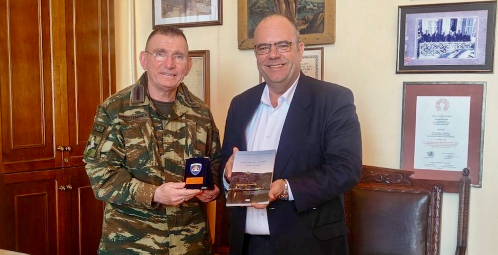 Εθιμοτυπική συνάντηση με τον Υποστράτηγο Ιωάννη Παπουτσάκη, ο οποίος στις πρόσφατες κρίσεις προήχθη και ανέλαβε καθήκοντα Υποδιοικητή της Ανωτάτης Στρατιωτικής Διοίκησης Αιγαίου και Ανατολικής Μεσογείου (ΑΣΔΑΑΜ), είχε την Πέμπτη 12 Μαρτίου 2026 στο γραφείο του ο Δήμαρχος Σύρου – Ερμούπολης Αλέξανδρος Αθανασίου. Όπως επισημαίνεται σε σχετική ανακοίνωση του Δήμου Σύρου – Ερμούπολης, στη συνάντηση επιβεβαιώθηκε η καλή συνεργασία της τοπικής αυτοδιοίκησης με τις Ένοπλες Δυνάμεις και η κοινή στόχευση για την ασφάλεια και την ευημερία της τοπικής κοινωνίας.