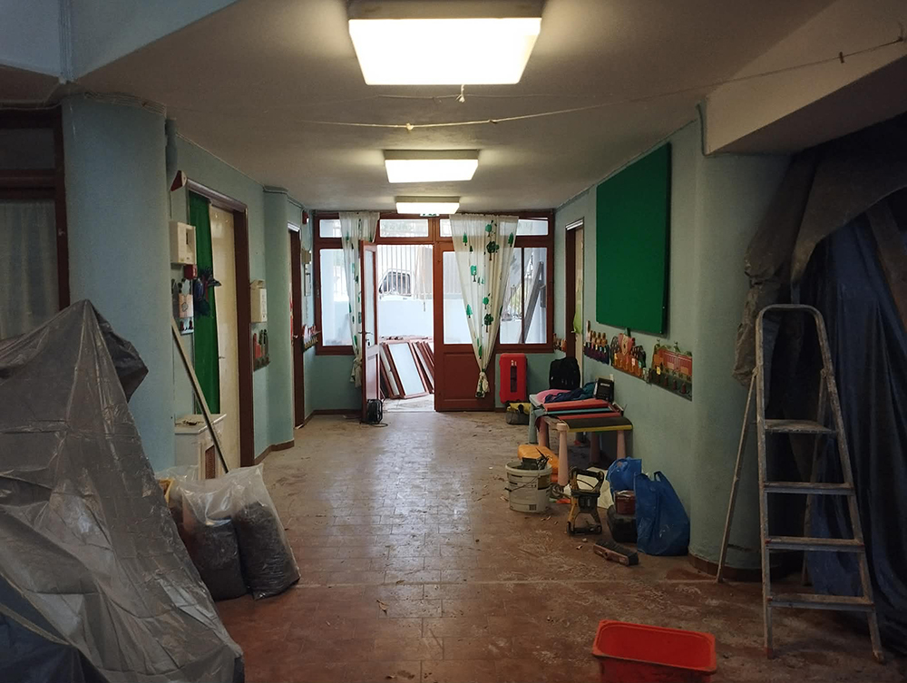 Στο πλαίσιο των εργασιών που βρίσκονται ήδη σε εξέλιξη, προχωρά η αντικατάσταση κουφωμάτων, καθώς και οι απαραίτητες επισκευές στον φέροντα οργανισμό του κτηρίου, μέσα από αποκαταστάσεις στοιχείων οπλισμένου σκυροδέματος και συναφείς οικοδομικές παρεμβάσεις, όπου αυτό απαιτείται. Παράλληλα, το τεχνικό αντικείμενο του έργου περιλαμβάνει και πρόσθετες εργασίες αναβάθμισης, που