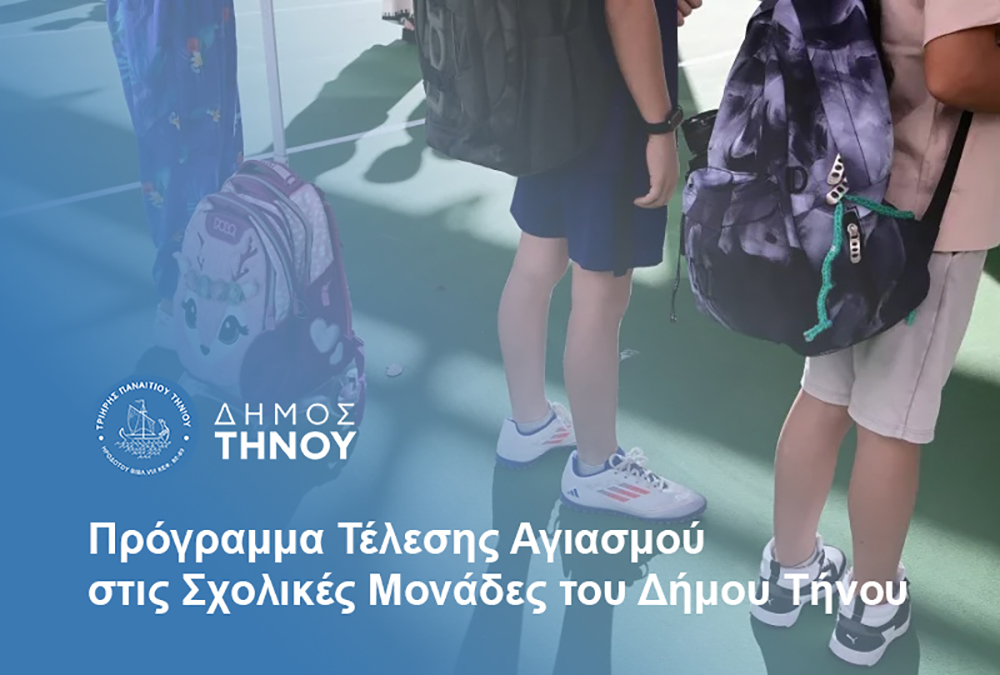 Την Πέμπτη 11 Σεπτεμβρίου θα χτυπήσει το πρώτο κουδούνι για τη σχολική χρονιά 2025-2026 σε όλα τα σχολεία της χώρας. Ο Δήμος Τήνου ανακοίνωσε το πρόγραμμα τελέσεως Αγιασμών για Νηπιαγωγεία, Δημοτικά, Γυμνάσια και Λύκεια.