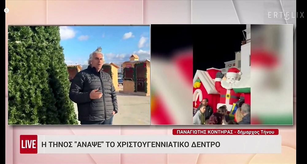 Στην εκπομπή Live Now της ERTNEWS φιλοξενήθηκε ο Δήμαρχος Τήνου, κ. Παναγιώτης Κροντηράς, παρουσιάζοντας το πρόγραμμα των χριστουγεννιάτικων εκδηλώσεων του Δήμου και το στόχο για μια πιο φωτεινή και χαρούμενη Τήνο.