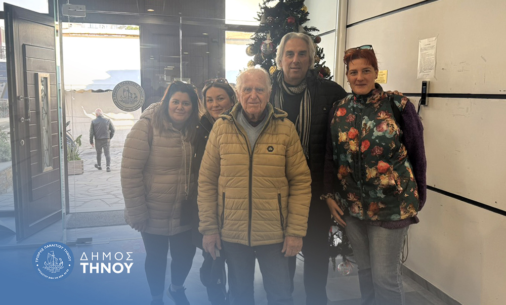 Το Δημαρχείο Τήνου επισκέφτηκαν σήμερα ωφελούμενοι και στελέχη του ΚΗΦΗ (Κέντρου Ημερήσιας Φροντίδας Ηλικιωμένων) Δήμου Τήνου, με αφορμή τις Άγιες Ημέρες των Χριστουγέννων, και αντάλλαξαν ευχές με τον Δήμαρχο Τήνου, κ. Παναγιώτη Κροντηρά.