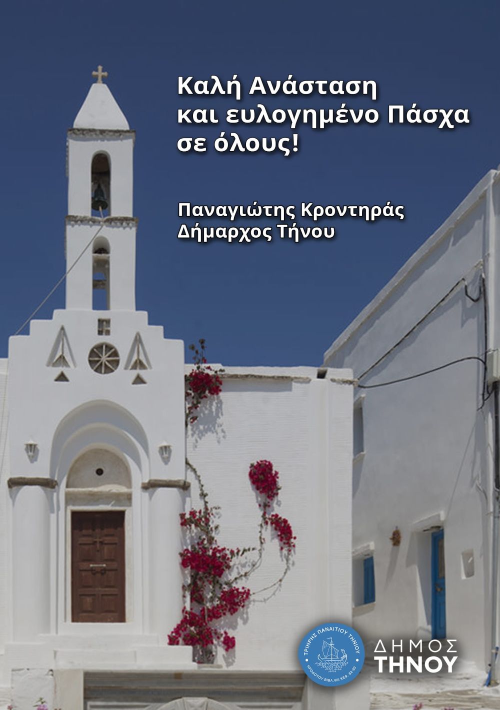 Με ιδιαίτερη χαρά, προσκαλούμε όλους εσάς, τους φίλους και επισκέπτες μας, να γίνετε μέτοχοι των μοναδικών παραδόσεων του τόπου μας. Σας περιμένουμε να βιώσετε από κοντά το Τηνιακό Πάσχα: από τη συγκλονιστική συνάντηση των Επιταφίων στη παραλία της Χώρας, μέχρι τις γιορτινές τράπεζες της αγάπης στα χωριά μας.