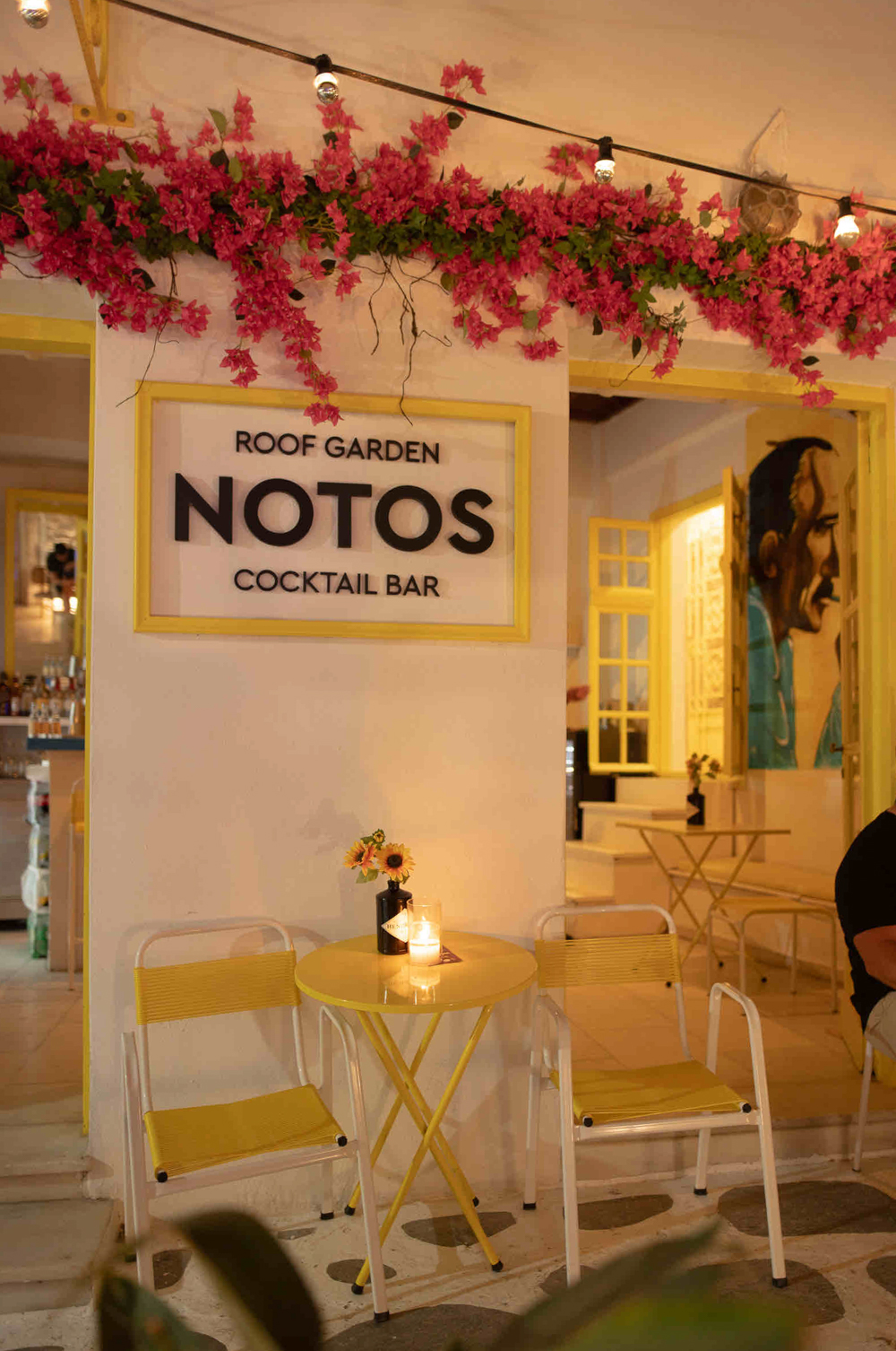Το NOTOS είναι από εκείνα τα μέρη που νιώθεις πώς έχουν ιστορία, με τοπικές γεύσεις, κοκτέιλ και μια αυλή που σε παρασύρει να μείνεις λίγο ακόμη. Άλλοτε κάθεσαι στο στενό, άλλοτε στο roof garden, πάντα με θέα και μια ατμόσφαιρα που σου ψιθυρίζει ότι βρίσκεσαι στις Κυκλάδες.