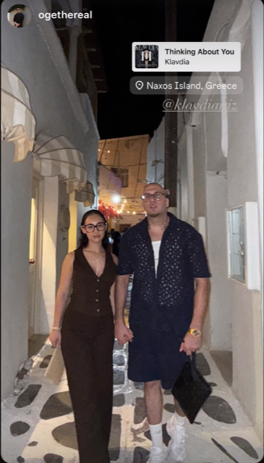 Ο Oge μοιράστηκε μια φωτογραφία με την ταλαντούχα σύντροφο του από τις βόλτες τους στο κυκλαδίτικο νησί, με το ζευγάρι να περπατά χέρι χέρι. Μάλιστα, το στιγμιότυπο συνόδευσε με ένα από τα καινούργια τραγούδια που κυκλοφόρησε η Klavdia μετά την Eurovision.